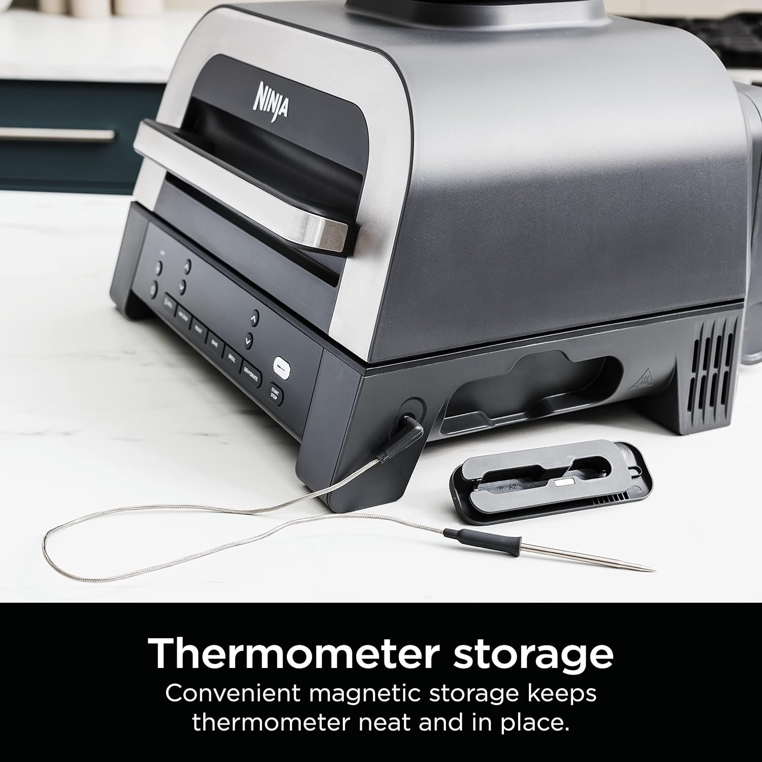 گریل داخلی نینجا فودی اسمارت ایکس ال ۶ کاره با قابلیت سرخ کردن در هوا، کباب کردن، پخت، گریل کردن و خشک کردن، دماسنج هوشمند فودی، نسل دوم، مشکی/نقره‌ای، DG551ME، ۲